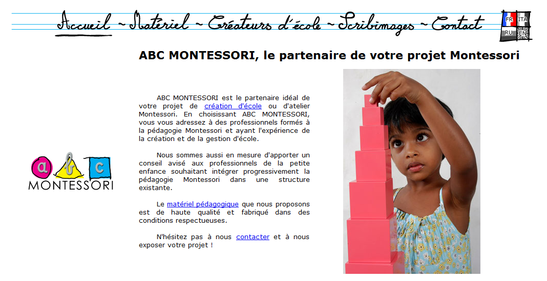 Vous trouverez la totalité du matériel sur internet, et à contrario faites attention au matériel disponible dans les magasins généralistes que vous pourrez trouvez ici ou là, siglés Montessori mais qui n'en ont que le nom. Ok! Encore faut-il savoir en qui faire confiance en termes de qualité...